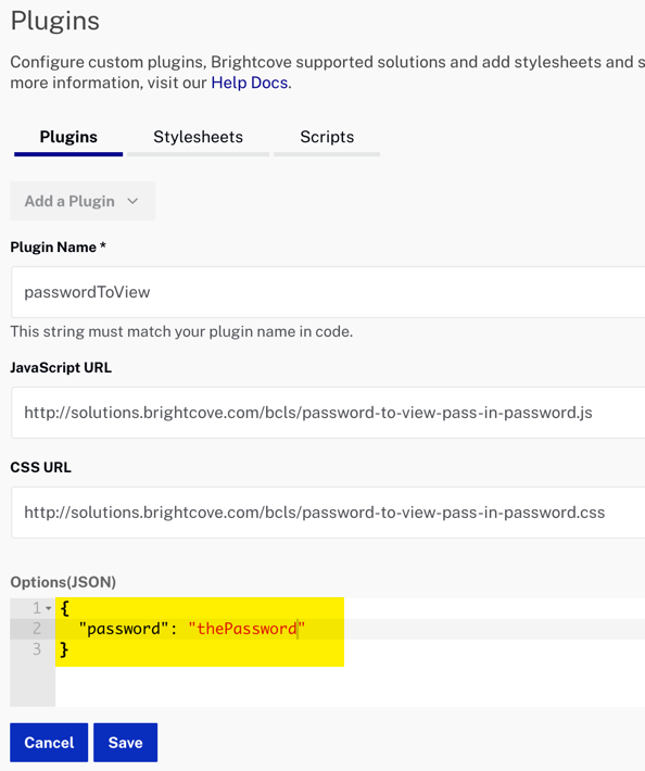 ここでは、実装ロジックは、カスタムプラグインに配置され、次のスクリーンショットに示すように、プラグインが関連付けられているプレーヤーで見たすべてのビデオのパスワードは、オプションとして渡されます。