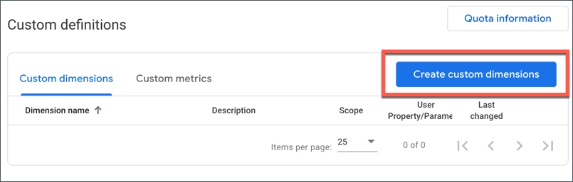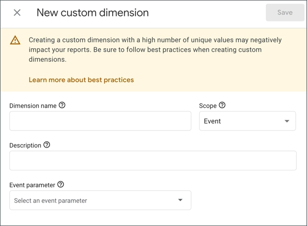 - カスタム ディメンションの作成をクリックします。